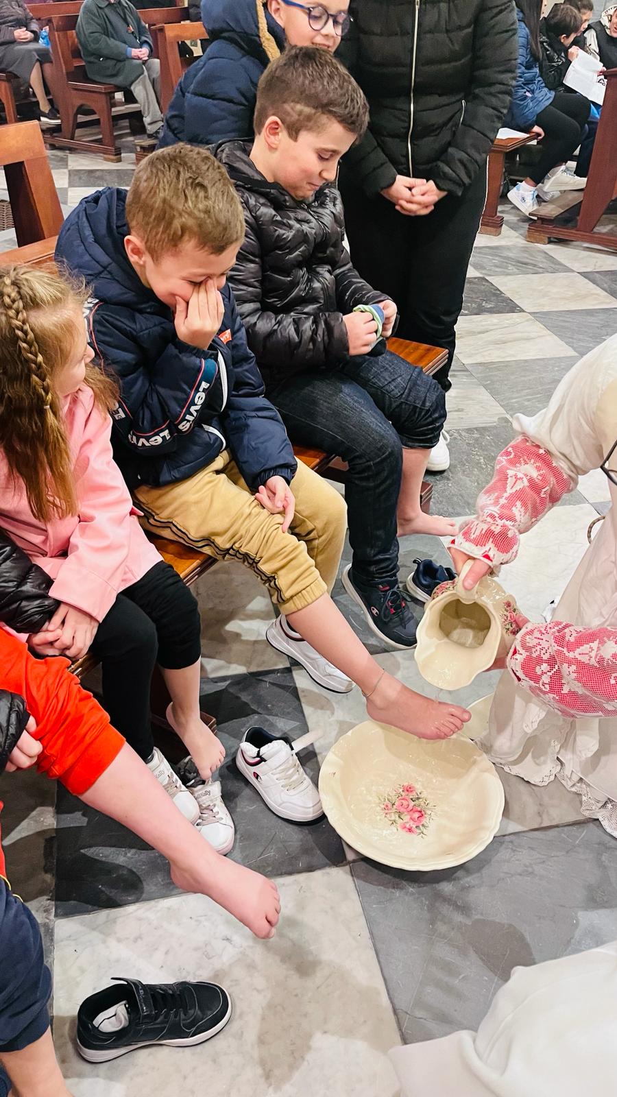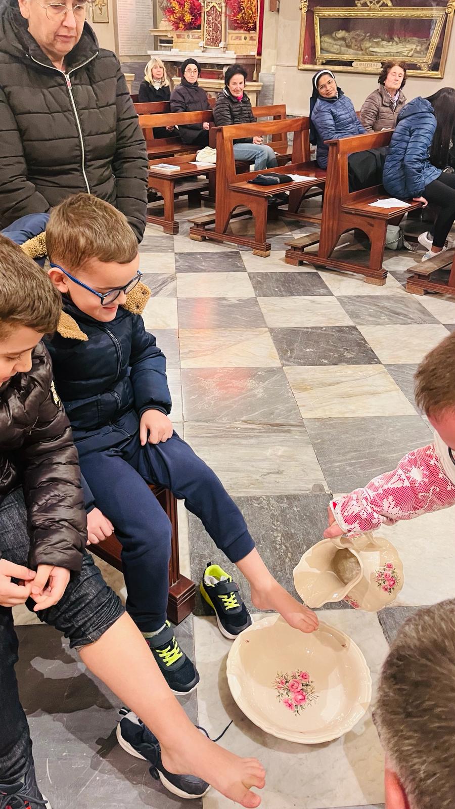 Celebrazione nella Cena del Signore e lavanda dei piedi ai bimbi del Catechismo che hanno iniziato il cammino e che si preparano alla Prima Comunione ![]()